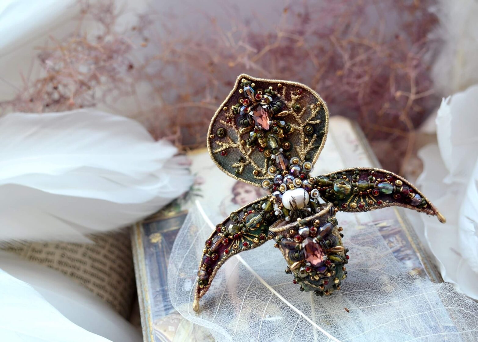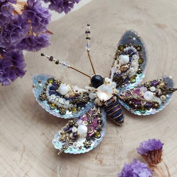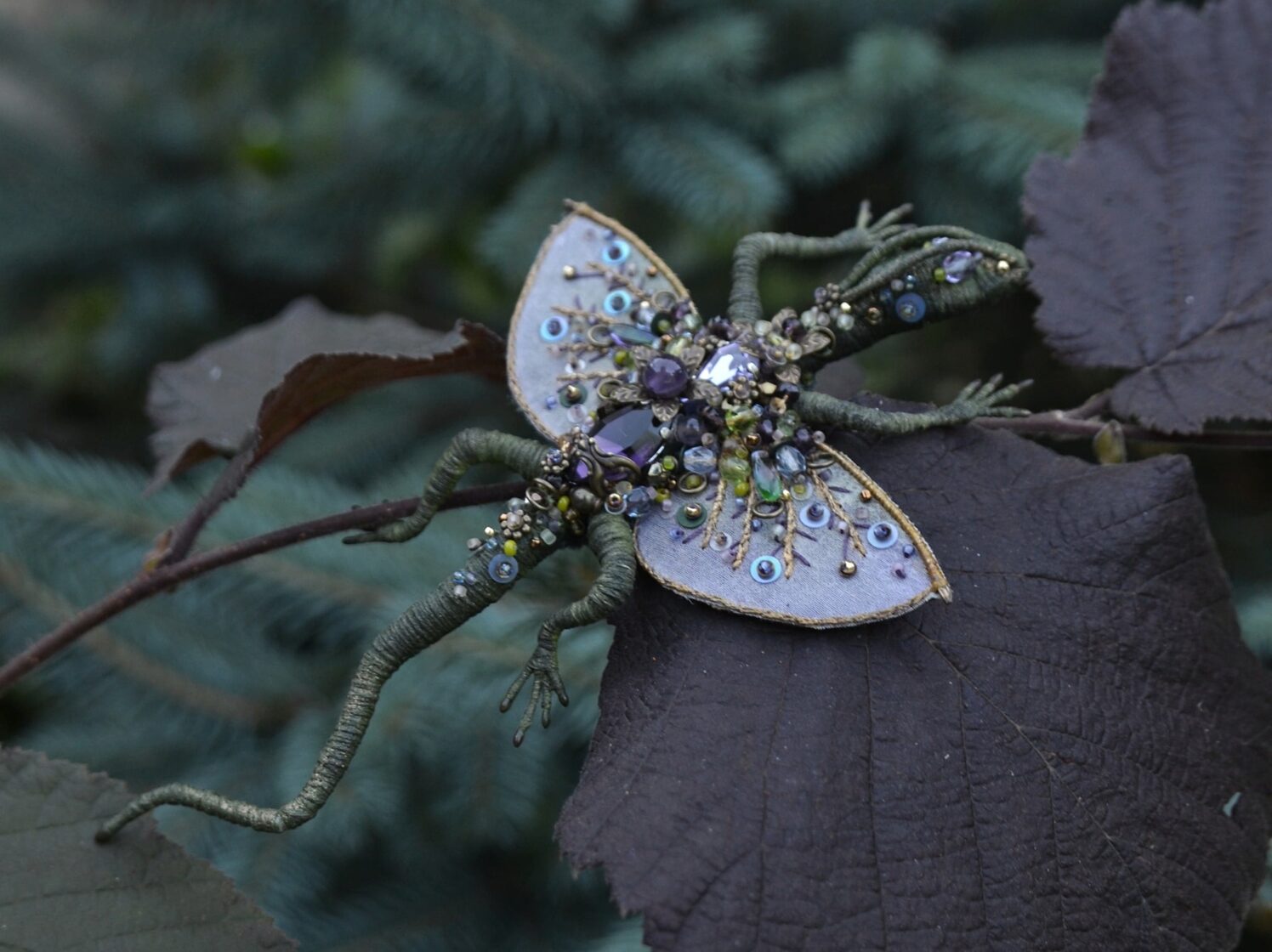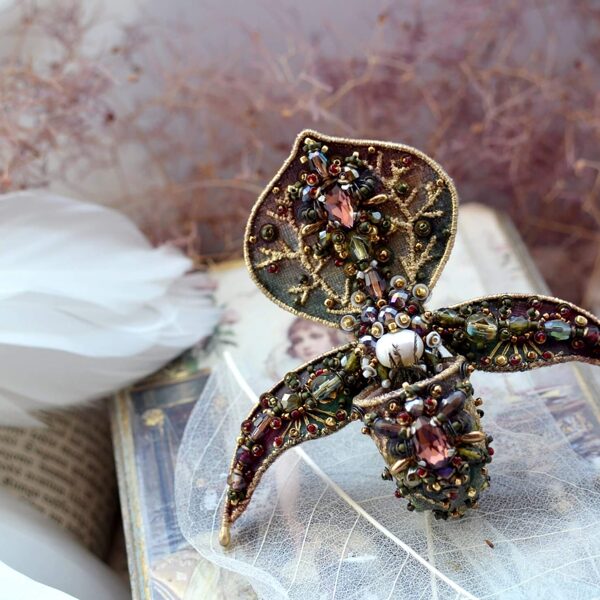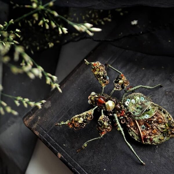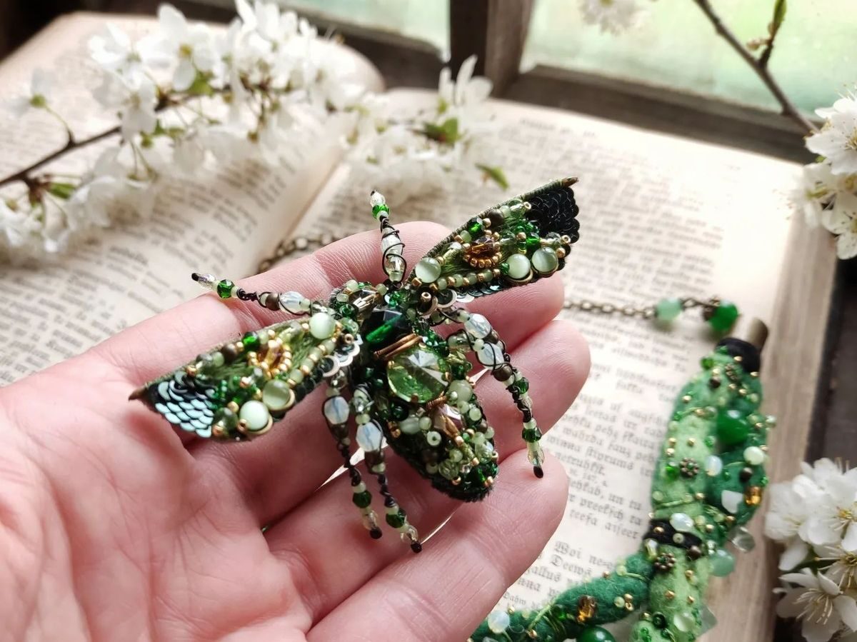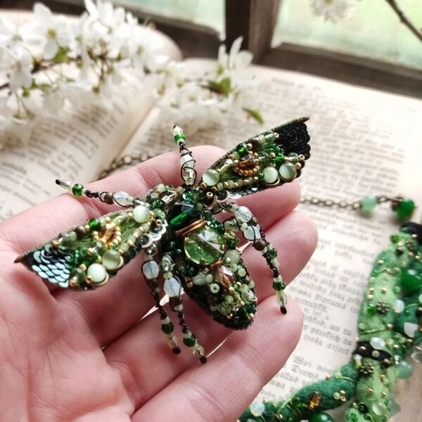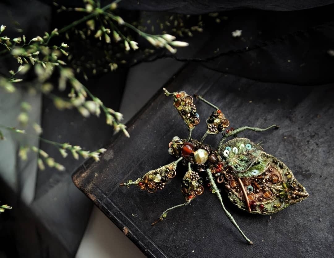 Hand embroidered memories of the wild — where insects and blooming flowers turned into unique bead embroidery jewelry