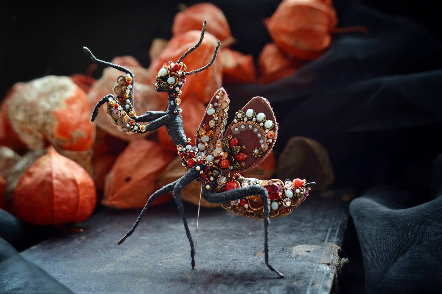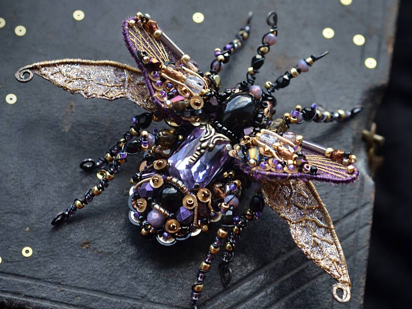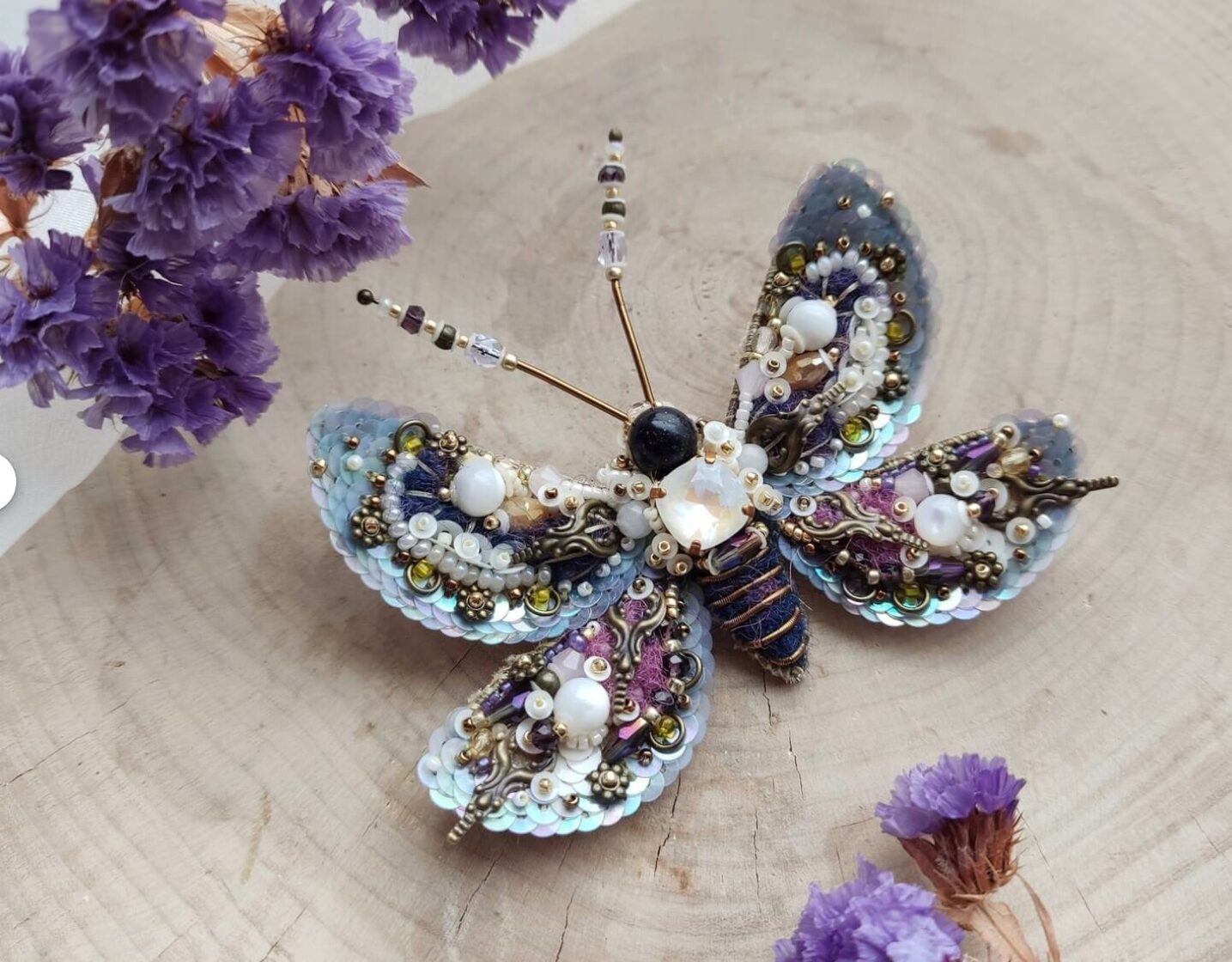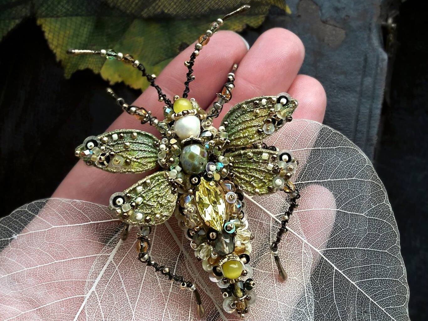 Hand embroidered memories of the wild — where insects and blooming flowers turned into unique bead embroidery jewelry